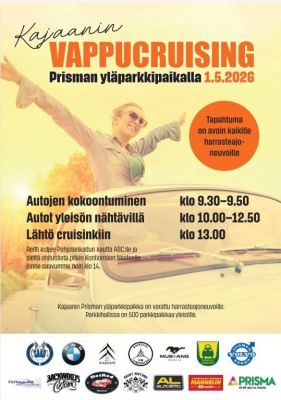 Kajaanin perinteinen vappucruising 1.5.2026 Prisman yläparkissa. 9:30-13.00 Mikäli haluat osallistua Fintoysin osastolle vappucruising aikaan, niin ilmoittautumiset alle tai minulle yv:llä. Tiedämme järjestäjälle ilmoittaa että montako auton paikkaa meille järjestetään Prisman parkkialueelle. Ilmoitathan osallistumisesta tiistaihin 28.4 mennessä. Kokoonnutaan ennen Cruisinkia entisellä "Koskiportin Nesteellä" joka sijaitsee ihan Prisman vieressä. Kokoontuminen klo 9:00 ja siirrytään letkassa sitten Prismalle.